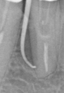 【治療前と治療後 遠心の透過像が消失 根尖からMTAが溢出】