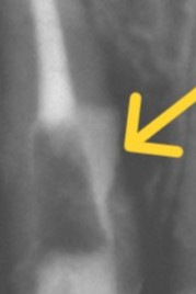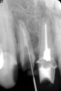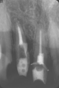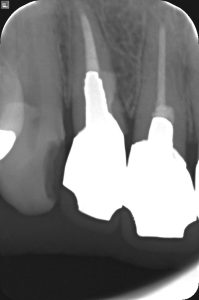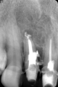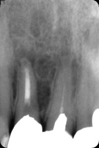 【4年後のレントゲン写真 パーフォレーション部の骨再生が見られる】