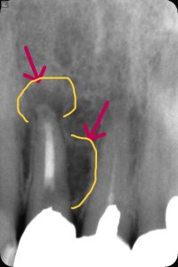 【透過像が根尖と近心側の2か所に存在】